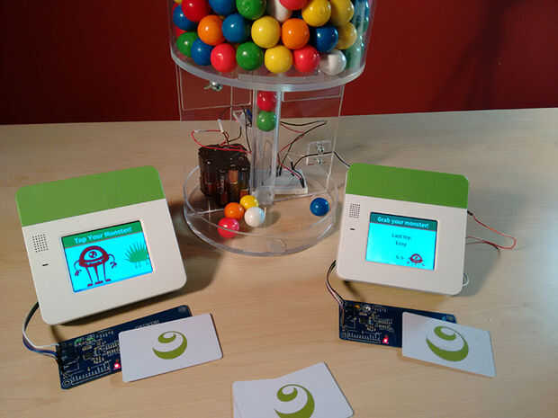 Se utilizaron dos Kinoma crea con NFC controlador Breakout Boards para configurar el juego. También se creó la segunda crear Kinoma a una máquina de gumball acrílico que lanzaría un chicle mediante solenoide con un partido de éxito.