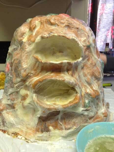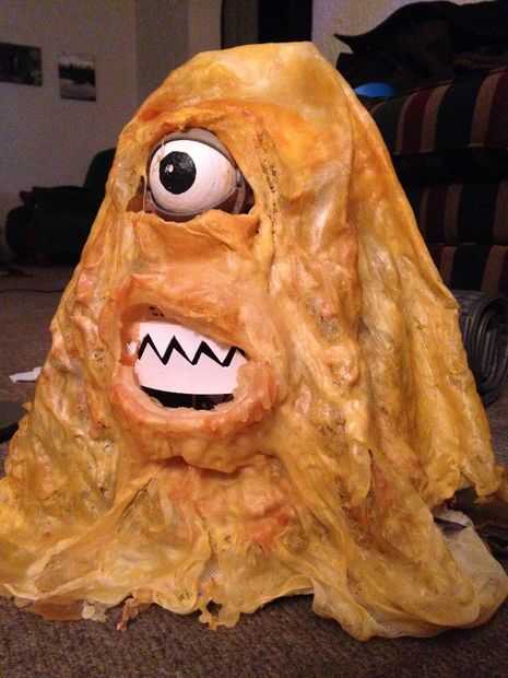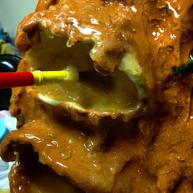 El método estándar para la fabricación de la máscara es hacer un molde de yeso para colocar el látex, pero estábamos demasiado duro un tiempo con el bastidor del yeso (que era nuestra primera vez) así que hemos pintado el látex en la escultura. La primera vez no funcionó, era demasiado débil y se desgarró. Para el segundo intento, utilizamos latex y paño de queso y esta funcionado mejor, pero todavía no funciona bien. Quedó sin embargo con este plan y utiliza más paño de queso y látex y esto funcionó para el producto final.