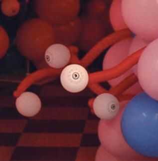 • inflar un medio camino rojo 260Q, y crea una torcedura pizca. Toque de las Naciones Unidas de la hacer "cómo aprender haga clic aquí para" pellizcar. • Aire inflar un 5 "Eyeball arribaImprimir Globo (precisión ajuste del tamaño del aire: 0,5 segundos / 5 pulgadas) y lo atan a la vuelta de tuerca pizca de la 260Q Roja. • Envuelva la sección no-inflado de la 260Q Roja en el Controlair del arco. • Repita este paso para el mayor número de globos oculares le posiciones tener a lo largo de toda la boca / túnel.