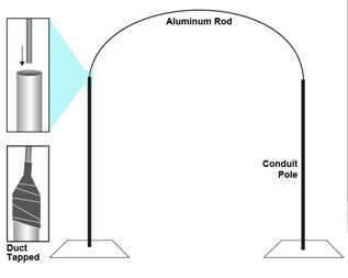 • Coloque los postes de han en cada placa base y la posición de ellos para el ancho desee su arco. • Deslice la varilla de aluminio en la parte superior de los postes de han. • cinta aislante las barras a los polos, asegurándose de la barra tiene altura suficiente para crear un arco alto suficiente para pasar por debajo.
