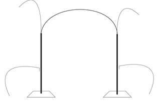 • Deslice una barra de aluminio de 6 pies en la parte superior de cada polo del conducto junto con la varilla de aluminio y cinta adhesiva de 14 pies todo lo posible para mantener las varillas en posición. • Doble las varillas de aluminio de 6 pies hacia abajo para crear los mejores brazos. • Medir cuatro pulgadas del extremo de las dos varillas de aluminio de 6 pies restantes y hacer una curva de 90 grados. • cinta aislante las barras en los polos del conducto 4 pies arriba de cada placa base. Repita el paso 1 para agregar los 11 "globos al segundo arco.