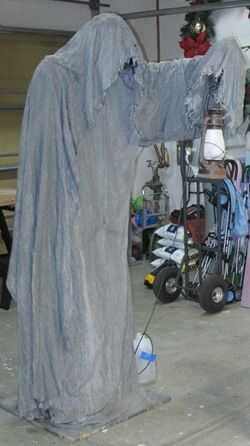 El siguiente paso de pintura apliqué un lavado de gris oscuro. Mezclar algunas pintura negra de la misma puede utilizado para barro de monstruo con agua. Dilúyalo con agua por lo que usted puede dejar correr por su apoyo. Me utiliza algunos pinceles de espuma para absorber el agua y luego había borrado en y deje el lavado hacia abajo.