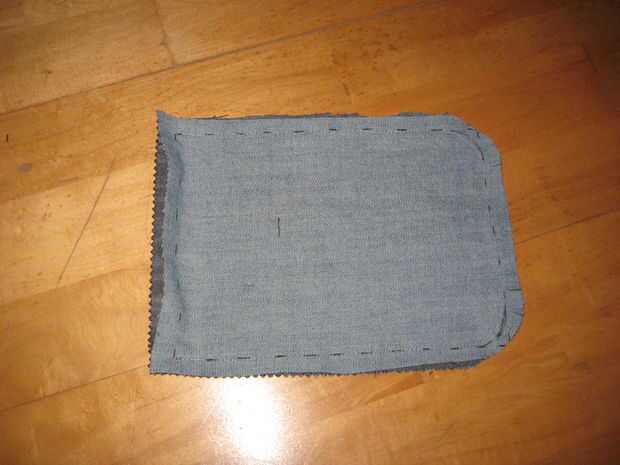 Ahora coser alrededor de tres lados, dejando abierta la parte superior. Curvas de las esquinas dos inferiores.