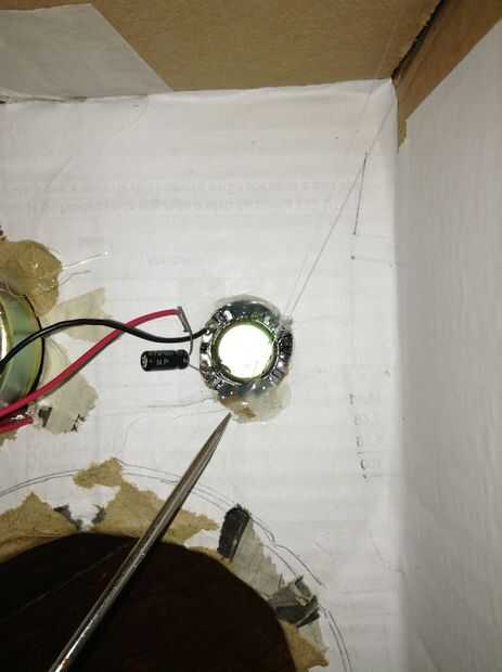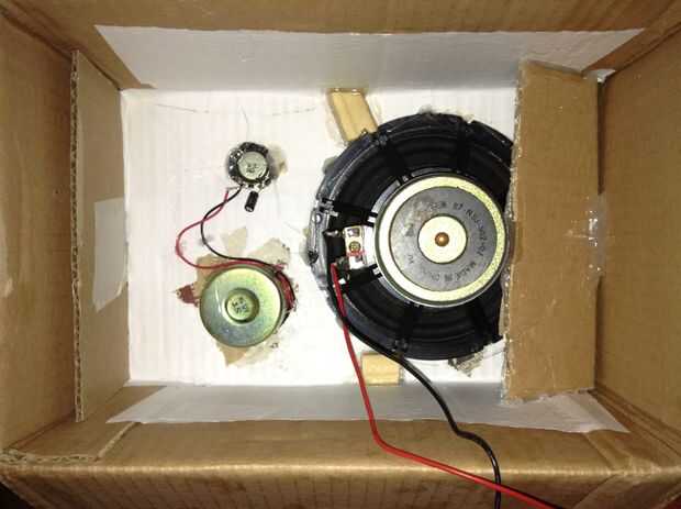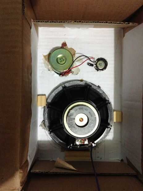 Ponga el altavoz cuidadosamente... y pegar dentro con pegamento caliente