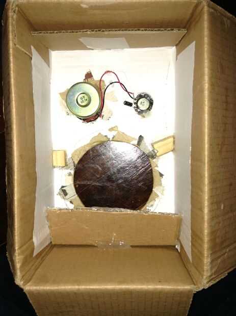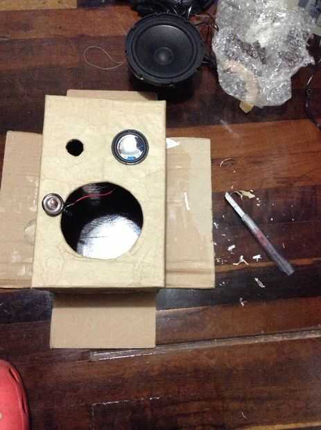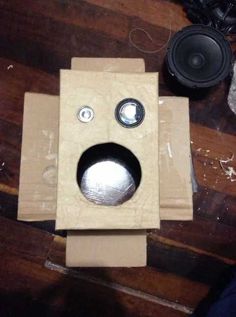 no hay altavoz maior UE utilizei uns pedacinhos de madeira para decriptar mais sustentavel...