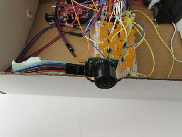 En cuanto al monstruo de la caja, utilicé este Pmod para averiguar cuando un objeto, es decir, una persona, está dentro de 7 pies del monstruo de la caja. Una vez que el Pmod detecta que una persona está dentro de esa distancia, puede tener el microcontrolador apagar los ojos brillantes (ya que son super brillantes) y Dile el servomotor para abrir la tapa de la caja y visualizar las letras en "Feliz Halloween".