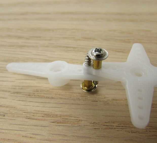 Antes de la porción del motor en el derecho lugar, te preparamos el servo "brazo" en primer lugar.