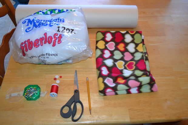 1. tela... cualquiera va a hacer. (Yo usé lana así que sería suave un peluche)