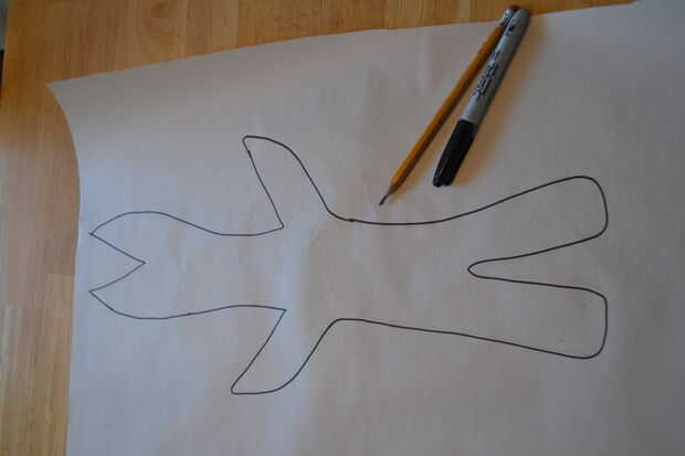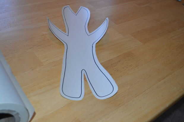 Dibujar el diseño del monstruo. Este diseño fue mi primera creación. He utilizado papel de periódico, pero puede utilizar cualquier tipo de papel o incluso cartón. Se trata de la plantilla. Al llegar el diseño que estás contento con añadir un 1/2 pulgadas todo alrededor para la costura. Cortan su diseño del monstruo hacia fuera en la línea añadida 1/2 pulgada.