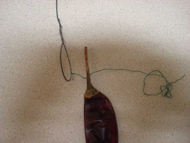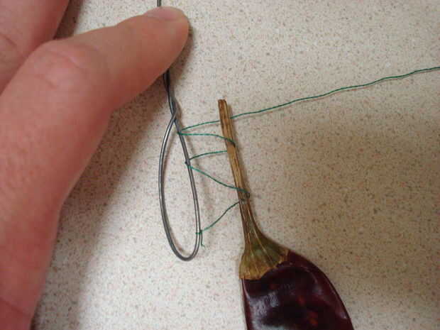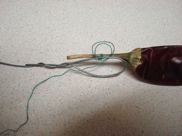 Para empezar, haga un bucle en el extremo del alambre. Esto evitará que el Chile caerse del cable. Para ello doblar el cable cerca del final, y luego torciendo juntos los dos hilos de alambre.
