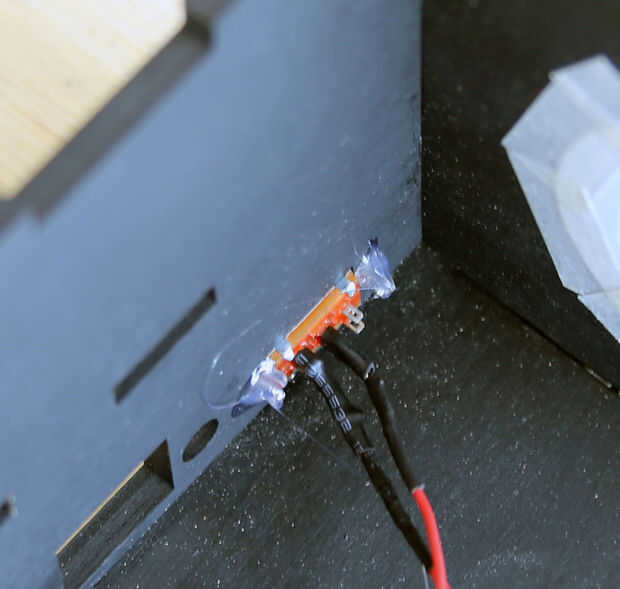 El interruptor que utiliza vino con tornillos pequeños que no pude encontrar las tuercas. En cambio, acabé simplemente caliente pegando los tornillos en el interior de la caja.