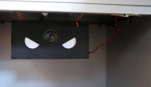 Utilizan las ventosas para colgar la caja debajo de un estante en mi oficina y ajustar las cuerdas de manera que el cepillo se raspa en el techo. Corrió el sensor por debajo de la plataforma por lo que sería sentir la luz ambiental.