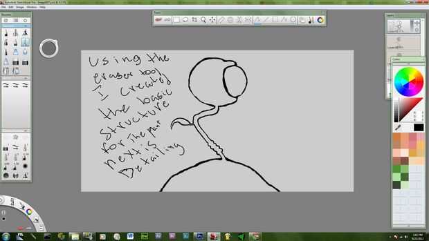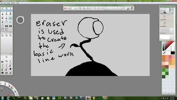 Encontrar la falta de control he en líneas en el libro del bosquejo pro hacen difícil para mí a la línea de obras de arte (estoy uso a la herramienta pluma en Photoshop para el arte de línea). Sin embargo, tengo alrededor de eso Compro usando la herramienta Borrador para "crave" el interior de la forma el arte de la línea y da las líneas un poco de inquietud.