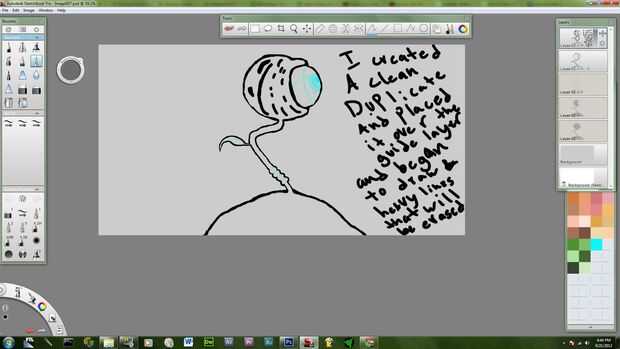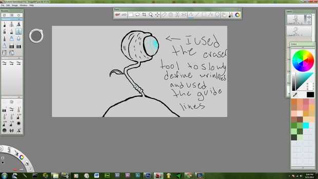 En la capa sobre el inicio de la guía usando la herramienta de pintura para hacer sus guiones y la línea sobre las guías. Utilizar el borrador para poco a poco gradualmente a las líneas.