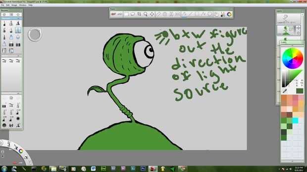 • luego con un suave matiz de verde agregar a donde deberá pegar la luz