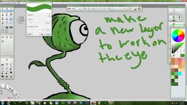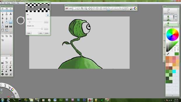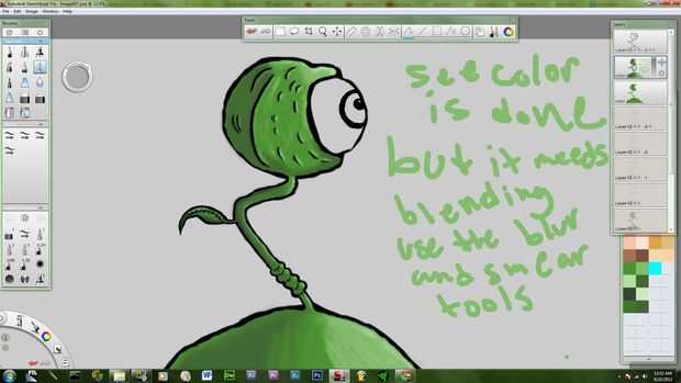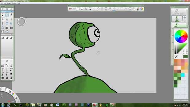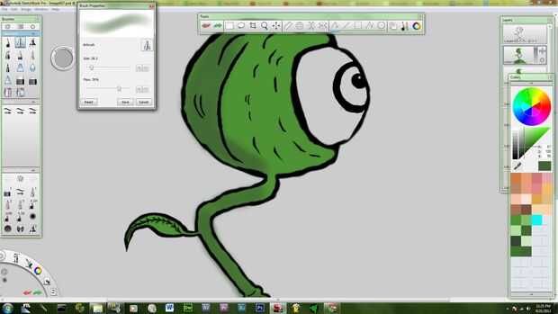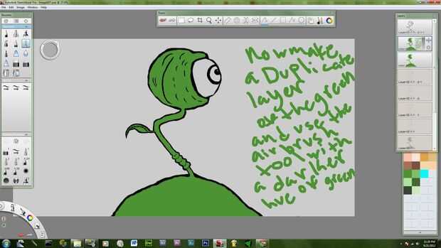 • Seleccione la herramienta aerógrafo con un tono oscuro de verde entonces la base