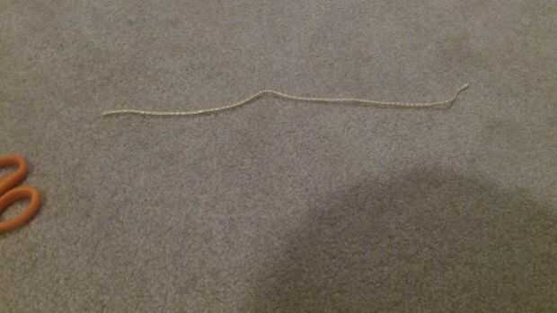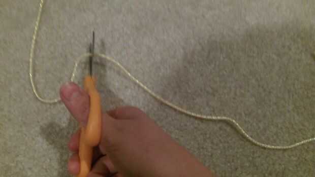 Corte un pedazo de 7 pulgadas de cadena, no cinta decorativa. Lazo alrededor de la cintura al igual que con el hilo. Cortar los extremos.