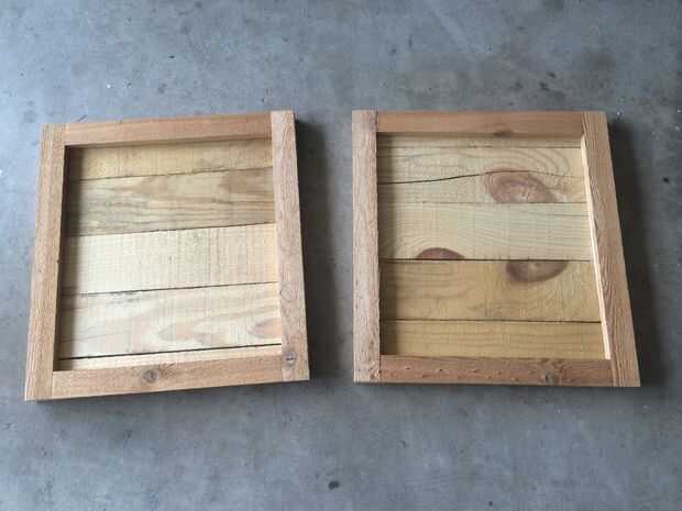 Corté las tablas que había quitado de los palets a medida con una sierra para cortar ingletes. Me puse un respirador gafas de máscara y seguridad mientras se reduce la paleta de madera porque habían sido tratado químicamente. En mi caso, la parte delantera y traseras paredes de la caja debían ser 24" de longitud y los lados debían ser 16" de longitud. Puse las tablas de la plataforma sobre el marco y se alinearon los lados asegurándose de que fue un ajuste agradable. Yo entonces clavó a la estructura de la parte trasera con una clavadora de acabado. Repetí el proceso para todos los lados de la caja 4.