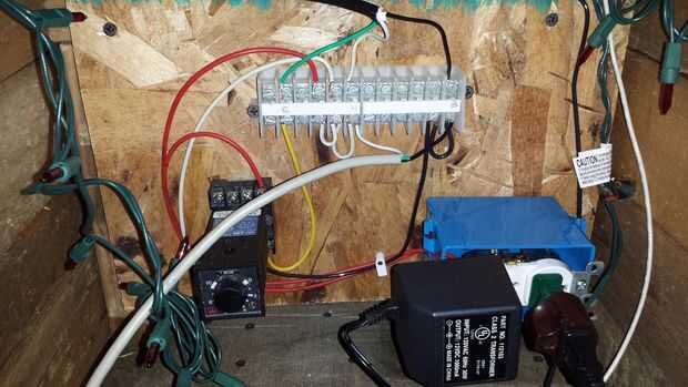 3. quiero que el cuadro se apague después de 5 segundos. Quiero el truco o el tratamiento a ser sorprendido. También quiero que el cuadro de reajuste para que el próximo grupo a. Porque el sensor de movimiento sería mantener el cuadro de abrir y cerrar todo el tiempo, he añadido un segundo temporizador que se abre el circuito después de 5 segundos. Se restablecerá después de que el sensor de movimiento ya no ve movimiento. Están conectados en serie para ello. El sensor de movimiento se restablece después de cerca de 42-47 segundos de ningún movimiento.