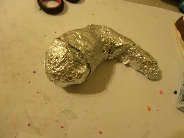 Tomar el papel de aluminio y formar en la forma de un gusano o slug, esto será la base del monstruo. Usando papel de aluminio es opcional y puede hacer su base completamente fuera de la arcilla pero es una manera segura de usar menos arcilla para ahorrar algo de dinero.
