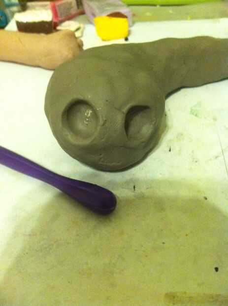 Añadir los ojos primero marcan donde van a ser con marcas pequeñas. Una vez que estás seguro que sabes donde quieres que tome tu bolillo y ahuecar dos zócalos del ojo grande.