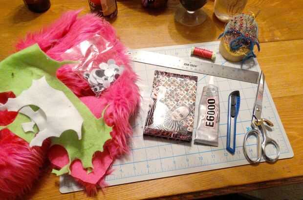 Tijeras de tela --yo he también en la foto una hoja de oficio, porque es la forma correcta de cortar la piel del faux. Sin embargo, tijeras son más fáciles y para este proyecto no importa tanto cómo buscar los extremos, ya que se a convertido en.