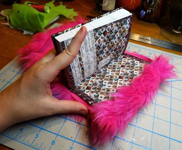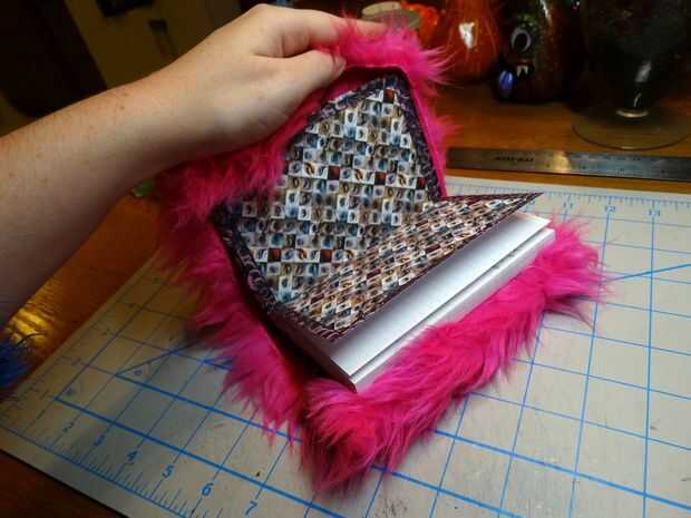 Simplemente deslice la cubierta posterior en el bolsillo del lado derecho, luego levante el bolsillo del lado izquierdo y sobre el borde de su portada. Abierto cualquiera cerrar el libro para asegurarse de que la tela permanecerá encendida durante el uso. Si encuentra que usted tiene demasiada holgura, sólo volver atrás y ajustar con la costura un poco más de la mano. Lanudas pieles son muy indulgente y nadie sabrá nunca!