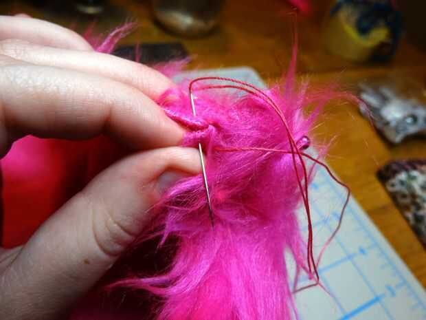 para coser sus áreas pinned. No olvide recoger las costuras con la aguja, para liberar cualquier piel que pueda haber conseguido suashed o bucle durante la costura.