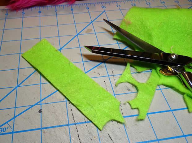 Como toque final, elegir una forma para el final de la lengua. Corté un simple V para hacer una lengua bífida. Puedes alrededor apagado, dejarlo embotado y seguro o incluso cortar flequillo así. Hábitos alimenticios de tu monstruo pueden influir en su decisión.