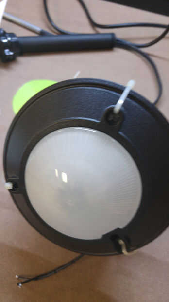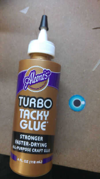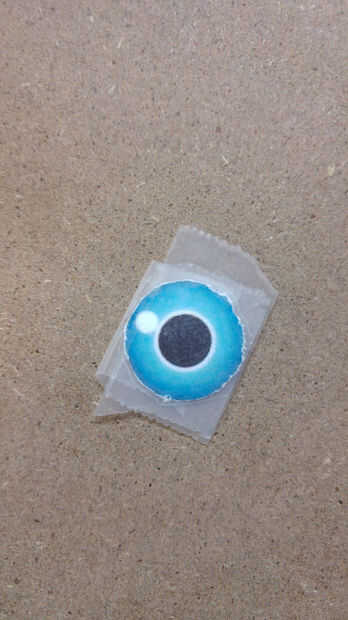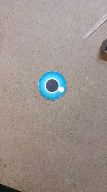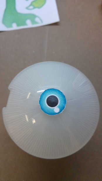 8. Con algun pegamento adherimos el globo ocular a la cúpula blanca