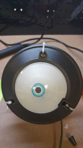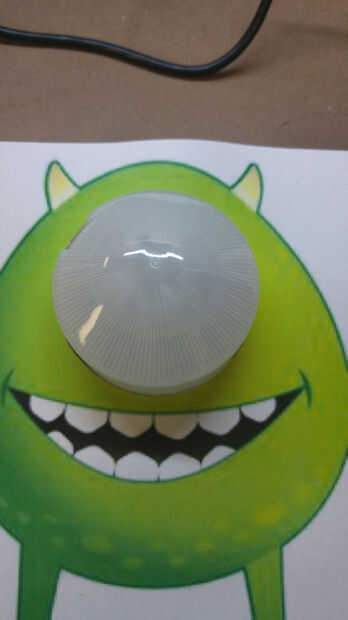 Este cuadro hace ruidos de miedo y tiene ojos rojos brillantes que encienden cuando apagan las luces. Poner debajo de una cama o escritorio a broma sus amigos (o compañeros).También podría cambiar el tipo de sensor para hacer un monstruo activada por