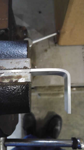1. Usando un mesa vice grip haga una curva de 90 grados dejando 1.75" de material después de la curva. Curva no era recta, hecho irregular por lo que podemos colocar la barra más atrás