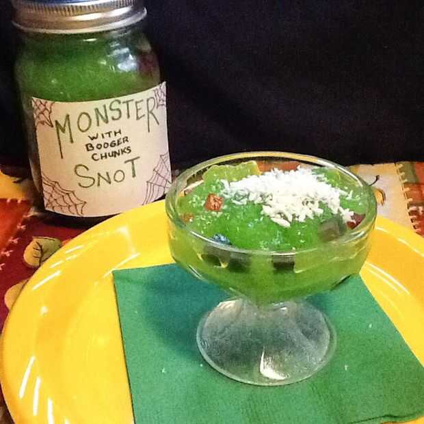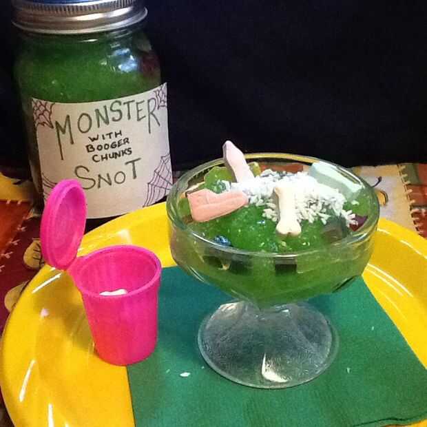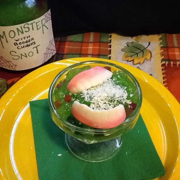 O dulces de basura representan algunos de los artículos surtidos que estornudó el monstruo fuera de su nariz con mocos, como botellas de pop, zapatillas viejas y huesos de pescado.