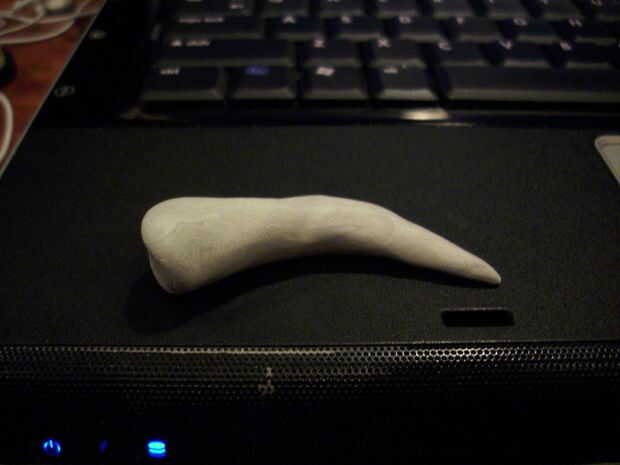 Entonces rodó hacia fuera un poco en mis manos y trató de hacer algo de un cono y le dio una leve curva, como la de la cola de un monstruo Real.