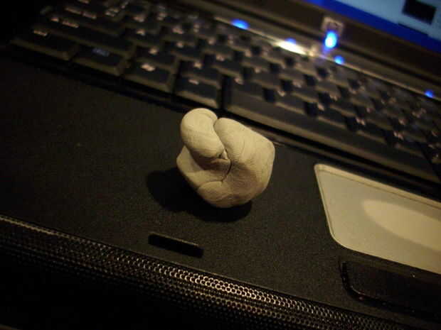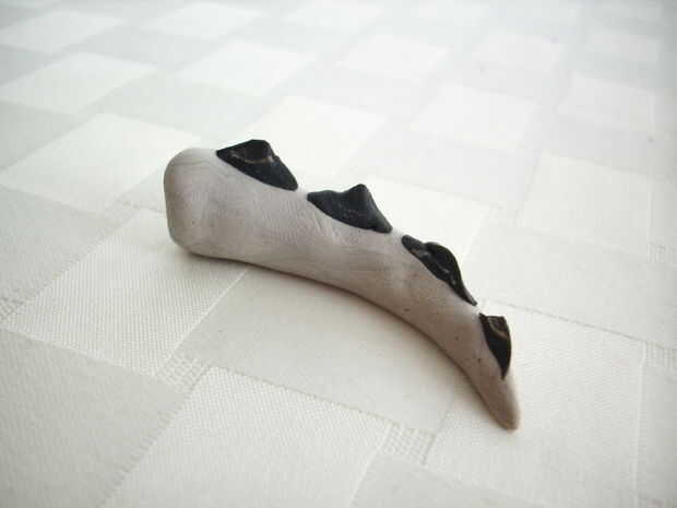 Entonces, había aplanado algunos de mi barro negro y cortar triángulos obtusos (mayor que 90 grados!) fuera de él y había pegado encima de la cola.