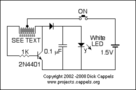 quiere un circuito Joule Thief en un paquete brillante delgado? ¿Puntos geek grave es alta en la agenda de la manitas de la visión de futuro y qué mejor manera de hacerlo que con las tripas recicladas de una unidad de disquete, paso a paso motor o pr