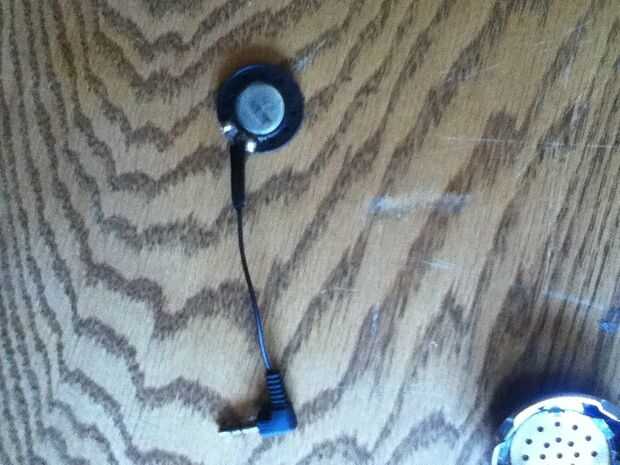 Ahora tira el cable del auricular con un cuchillo, navaja o tijeras para alambre. Luego arena de un centímetro fuera del final del cable de color y soldadura en el altavoz. A continuación puede poner cinta eléctrica sobre los cables o un arranque retráctil con un encendedor.
