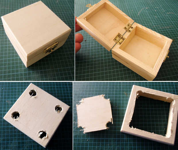 Quitar las bisagras y cierre de la caja y reservar junto con la parte inferior de la caja.