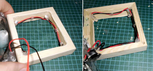 Después de instala el LED, cable de ventilador y coloque en la parte inferior de la tapa de la caja de hobby.