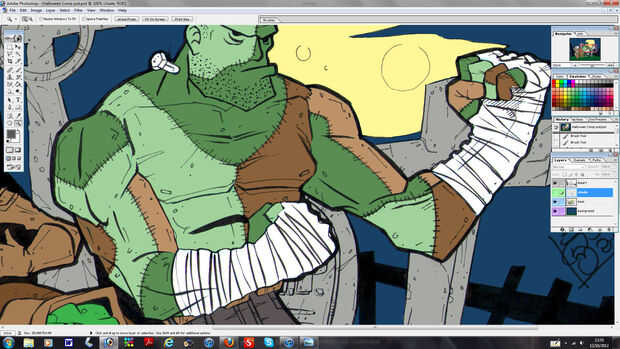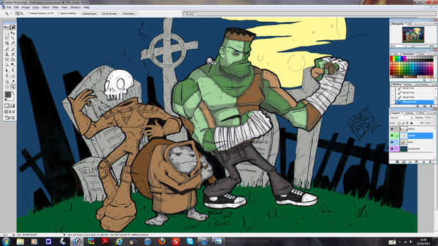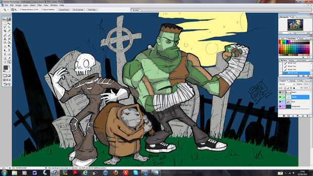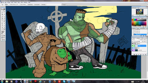 Son sólo etapa por etapa todos utilizando las mismas técnicas de imágenes. Notarás que he cambiado los colores de la piel y los trajes de los personajes, usar la misma técnica para esto. Vuelta de capa sin colorear, haga clic en seleccionar, COLOR, haga clic en la parte que desea y presione aceptar luego resaltar la capa pisos y usted puede cambiar el color plano de esa parte. Movimiento en la capa de sombra para añadir la sombra aunque arruinara todo el tiempo así mantener control sobre las capas.