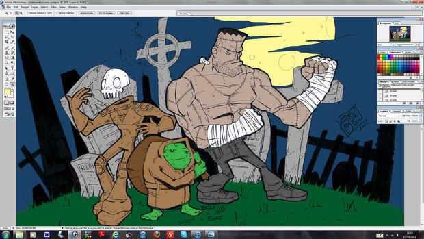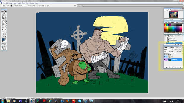 Justo ahora crear dos capas y colóquelos debajo de su capa de digitalizar, haga el inferior fondo esta voluntad ser su color de fondo de modo que usted puede cambiarla más adelante después de los personajes. La capa ahora en el centro será su capa de pisos, esto es donde puede color su imagen agradable sin pasarse de las líneas, uso de colores planos para esto. Esto significa que usted podrá acumular sus colores de este color, sólo he puesto hacia abajo de colores para que los personajes son más fáciles de seleccionar más adelante, siempre se puede editar como podrán ver que hice.