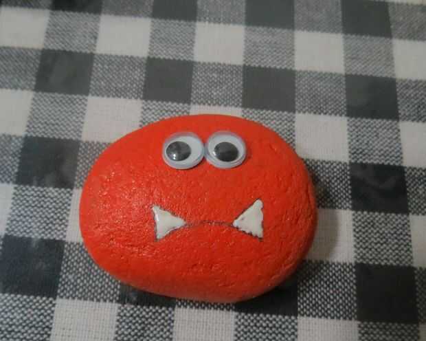 Tamaño de los ojos y la colocación de los ojos depende de usted, depende de la forma de la roca y el tamaño de la roca. Puesto que son monstruos que usted podría tener sólo un ojo o dos, tres, cuatro, o tanto como usted desea. Podría utilizar algún pegamento caliente o pegamento blanco ordinario para pegarlos en el lugar.