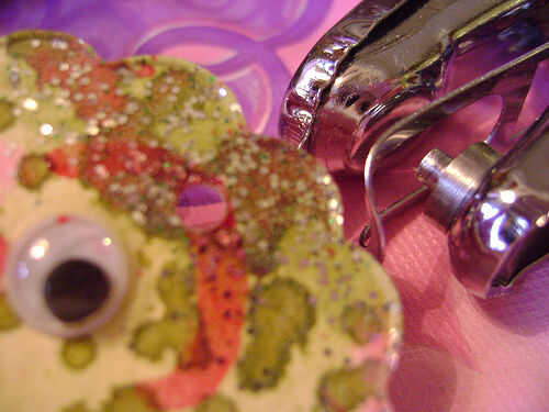 Perforadora 2 orificios en el corazón. Lo hice en los lóbulos externos y entre los ojos.