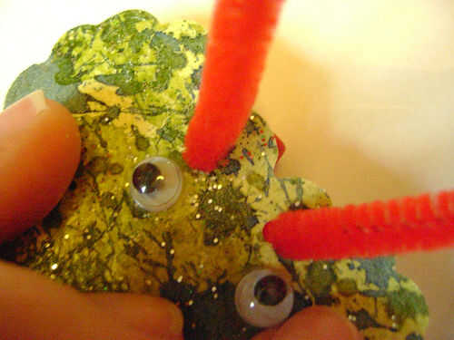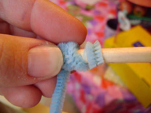 Enrollar los extremos del tallo de chenille alrededor de un pasador u otro lápiz para crear las antenas