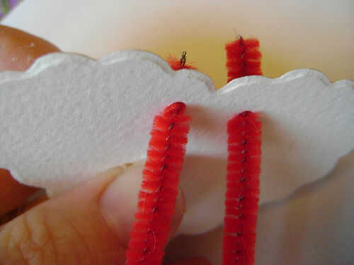 Deslice los extremos del tallo de chenilla a través de los orificios perforados en el corazón.