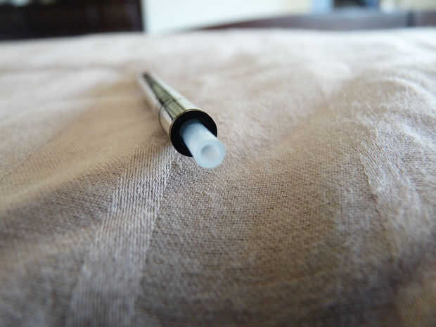 Es mucho mejor hacer pequeños cortes incrementales. Siempre puede cortar un poco más apagado, pero una vez que corta no hay volverla. Si usted encuentra que usted corte demasiado corto, aún habría suficiente del tubo de tinta antes de la tinta para permitir unos intentos más.