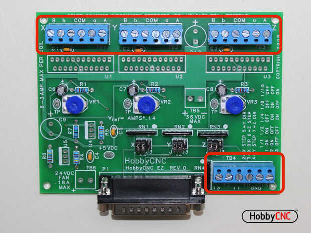 Instale (4) posición 6 bornes (TB1, TB2, TB3, TB4). Oriente los agujeros para los cables hacia "afuera". Estos pueden requerir un poco calor extra a la soldadura del flujo ya que una gran cantidad de cobre.