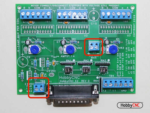 Instale (2) posición 2 bloques de terminales (TB5, TB6). Oriente los agujeros frente a los signos de "más y menos". Estos pueden requerir un poco calor extra a la soldadura del flujo ya que una gran cantidad de cobre.