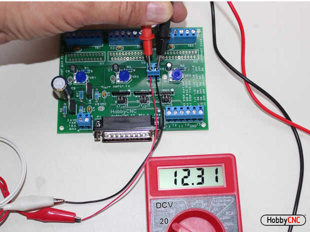 Verifique que el voltaje de la prueba apropiado y polaridad a TB5 (imagen 2). Sí, este es uno de los metros de voltios de carga de puerto "Gratis con cualquier compra". Es perfecto para este proyecto y el costo no puede ser vencido. En este ejemplo, el metro se encuentra a 20 en la sección DCV.