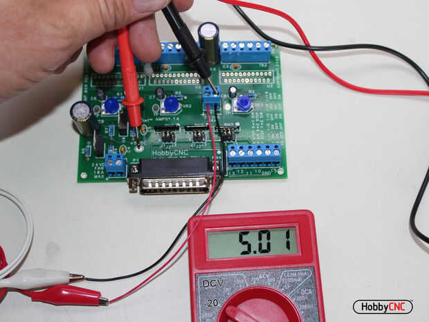 Con un voltímetro Verifique eso + 5.0VDC a 5.2Vcd está presente en el botón con la etiqueta + 5VDC. Los toques de plomo negro prueba el "-" en TB5 (última imagen). Si no, revisar todos los pasos anteriores y corregirlos.